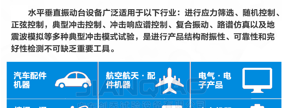 您好!歡迎光臨廣東劍喬試驗設備有限公司官網!主營:振動臺,振動試驗臺,電動振動臺,高頻振動臺,沖擊試驗臺