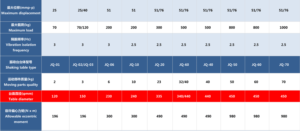 * 位移可選76mm或100mm.uDisplacement peak-to-peak value of  76mm or 100mm.